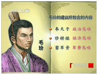 毛玠的这一段话,我认为可以称之为曹操版的“隆中对”,他是从一个很高的角度对曹操提出了一种战略性的意见。毛玠说现在国家的局势是什么样的?天下大乱,四分五裂,国本动摇,皇帝被人劫持着走过来走过去,经济崩溃,所有的老百姓都不能安居乐业,灾难流行,又是天灾又是人祸。那么在这样的一个情况下,最重要的就是做这样一件事情:第一要把现任皇帝把他安定下来,国本就保住了,然后自己发展自己的实力。毛玠的这个曹操版的“隆中对”世纪上讲出了这样两个道理,就是在这样一个动乱的时代你要成就一番事业,也就是他所说的霸王之业,必须有两个条件:一是正义,二是实力。而实力当中首先是经济实力,战争确实拼的是武力,但是战争武力比拼的背后是经济实力的支撑,之有足够的经济实力来支持,你这场战才能打得久,才能打得赢,所谓“兵马未动,粮草先行”嘛,所以你必须修耕植、蓄军资。除了经济实力的比拼以外,战争作为政治的延续,还要比拼政治实力,政治实力靠什么呢?靠正义的旗帜,你必须表现自己是师出有名,是堂堂正正的正义之师,至少你必须有一面正义的旗帜。