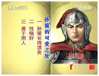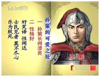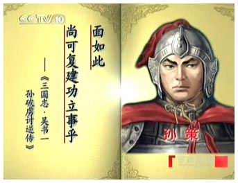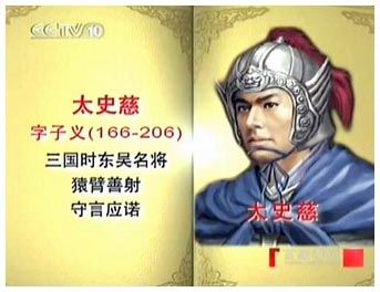 那么这样的一种作风就使得孙策这个少年英雄英气逼人,充满了人格魅力,也使他和其他的英雄惺惺相惜,比方说太史慈。太史慈原来是刘繇的部下,而刘繇是和孙策打仗的。有一次他们狭路相逢,孙策这边带了十三个人,太史慈只有一个人,那你敢跟我单打、单挑吗?单打独练,行啊!两个人就打起来了,短兵相接的时候,就发展到近乎肉搏,这个时候孙策手快,一把把太史慈背上戟拨下来了,太史慈也手快,一把就把孙策的头盔拿下来了,他们有过这样一段遭遇,当然后来大部队来了以后两个人就分开了。那么在后来的一次战斗中太史慈做了孙策的俘虏,那么孙策听说太史慈被俘了以后,就走上前去亲自为太史慈松绑,然后拉着他的手说:太史兄弟,我们又见面了,我问你个问题,如果我做了你的俘虏会怎么样?太史慈说:那就不好说了,那可不一定。孙策就笑:行了,行了,我们也不要打了,我们合作吧,共计大事。那么从此太史慈就成为孙策手下的一员战将,太史慈他是一个英雄啊,就连曹操都是非常想得到太史慈的,当时曹操给太史慈寄了个包裹,太史慈打开一看,里面装了一味中药,大家猜猜是什么药?当归,就是该回来了,但是太史慈一直跟着孙策,后来又辅佐孙权。