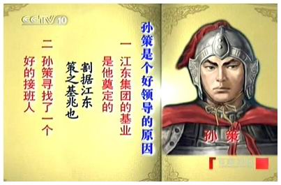 其实我说呢,他还应算是个好领导,他应该说是江东集团的好领导。因为江东集团的基业是他奠定的,江东六郡是他平定的,所以陈寿在为他作传的时候说了这样的话:“割据江东,策之基兆也”,是他打下的江山,他在七、八年之间做了别人一辈子才能完成的事情,确确实实是一个英雄。他作为江东集团的好领导的第二点,是他寻找了一个好的接班人。当时孙策知道自己也命在旦夕,他要给自己找个接班人把他这个基业传下去,当时张昭这些人都认为他会选老三,老三叫孙翊,为什么呢?老三像他,老三简直就是一个小孙策,史书上的说法是“骁悍果烈,有兄策风”,就是有孙策的遗风。而按照中国传统的政治规矩是接班人总是希望像自己,我们去看皇帝的这些遗诏,它往往都说皇什么什么子某某,深肖朕躬,这个肖什么意思?就是像的意思,不是孝顺的孝,就是他很像我,很像朕,所以传给他。那么按照这个惯例,大家想肯定也挑一个像他的,但是没想到孙策挑选的是孙权,而孙权和他哥哥孙策是很不像的。