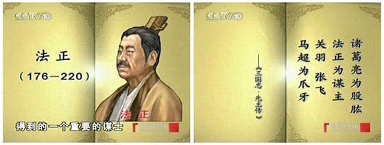 这里稍微交待一下法正,这个法正是刘备得了蜀以后得到的一个重要的谋士。根据《三国志?先主传》的记载当时刘备到了成都以后,以“诸葛亮为股肱,法正为谋主,关羽、张飞、马超为爪牙”,也就是说这个时候刘备集团,治理国家、主管军政大事的是诸葛亮,出谋划策的,运筹帷幄的时法正,行军打仗、攻城略地的是关羽、张飞这些武将。