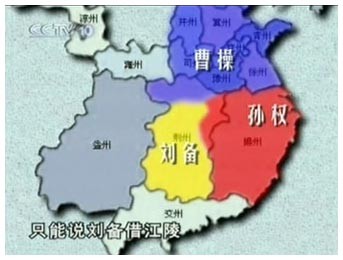 但是这个时候我讲过它是个不讲道理的时代,不是讲什么我们还有继承法啊,找个律师来打官司那个都不顶用的,那个时候是一个靠拳头说话的时代,哪个地方谁用武力打下来的就是谁的,你要讨回来可以,你再用武力啊。而这个时候刘备没有这个能力发兵去从周瑜手上把江陵郡打下来;而江陵是周瑜花了一年功夫打下来的,当然也不可能拱手相让。所以这个时候刘备只能忍气吞声地去找孙权说什么呢?说“求都督荆州”,这是比较准确的说法,而且《资治通鉴》采用的就是这个说法。什么叫“都督荆州”呢?因为刘备这个时候不是已经自己任命自己为荆州牧了吗?他任命为荆州牧以后孙权不是也同意了吗?那么荆州牧就应该在荆州的治所,就是他的首府上任,首府在哪儿呢?在襄阳,襄阳在谁手上?曹操手上,他去不了。所以刘备只能退而求其次,说我不可能在襄阳就任,我哪怕在南郡就任也行,因为襄阳是南郡的,南郡的治所又在哪里呢?在江陵。所以刘备的说法是“求都督荆州”,实际上的意思是要南郡、要江陵。