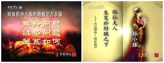先讲第一件,孙权嫁妹妹。孙权嫁妹妹是阴谋吗?《三国演义》说是,而且说这主意是周瑜出的,结果呢,弄巧成拙,周公瑾赔了夫人又折兵。这是演义,事实是什么样的呢?据《三国志》的记载是这样的:“琦病死,群下推先主为荆州牧,治公安。权稍畏之,进妹固好。”什么意思呢?就是刘备拿了江南四郡以后就上表朝廷,推荐刘琦做了荆州刺史,后来刘琦病死了,于是荆州集团这些人就推举刘备做荆州牧。这个时候刘备的力量强大了,孙权也逐渐地感到了畏惧,因此把自己的妹妹嫁给刘备,以便巩固孙刘联盟。