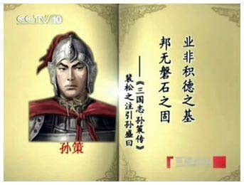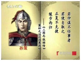 当然,这只是我们事后的分析,我们回过头来看这段历史我们觉得是这样的;而在当时呢?在当时也许只不过是一次风云际会,也不过是一次双向选择。我们来看一看周瑜劝说鲁肃的时候是怎么讲的:周瑜说,现在天下大乱,群雄并起,这是“烈士攀龙附凤驰骛之秋”。也就是说,这样一个乱世是我们男子汉大丈夫建功立业、干一番事业的最好时候,在这个时候我们应该怎么办呢?周瑜引用了马援答汉光武帝的一段话,叫做:“当今之世,非但君择臣,臣亦择君。”就是在这样一个动乱的年代,不但君在挑选人才、挑选臣,我们作为人才、作为臣,我们也可以给自己选一个老板,那么多老板嘛。而在周瑜看来,孙权是值得选择的,周瑜认为他和鲁肃跟着孙权是能成就一番大事业的。那么孙权为什么又值得选择呢?请看下集——坐断东南。