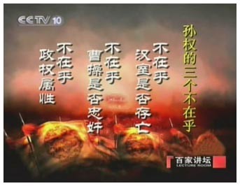 谁是英雄呢?第一个就是曹操,如果没有曹操平定北方为将来的三家归晋打下这样一个基础的话,很难说将来历史会发展成什么样子,我们的人民还要受多少苦难;其次孙权、刘备,孙权把江东平定了,刘备把荆州的一部分益州平定了,也就是说三国鼎立,三家之主都为将来的重归一统做出了自己的贡献。因此曹操、孙权、刘备都是这个时代的英雄。因为这个统一或者一统并不是谁的专利,曹操、刘备、孙权都有都有权利,都有资格。你不能说,只有曹操才有资格统一;也不能说,只有刘备才有资格统一,就因为他姓了个刘,这是没道理的;而孙权也是想统一的,这个忽视孙权也是没道理的,孙权称帝以后也还是不满意的,当时要孙权去进行一些祭祀仪式孙权都不肯,他说天下没有统一我怎么能做。