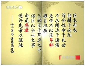三顾的说法有没有依据?有,在那里?《出师表》,所以肯定是事实。但绝不是诸葛亮端着架子不肯出山,非得刘备三请四请才出来,也绝不是他原本不打算出山,要三顾以后才出山,他原本就是要出山的。证据在哪里?陈寿《三国志·诸葛亮传》“每自比管仲乐毅”。一个自比管仲乐毅的人,绝不会老死隆中,就是我在节目里问的,他在隆中待着干什么?他是肯定要出来的,那么为什么《出表师》会有另一种,似乎是另一种的说法呢?似乎。