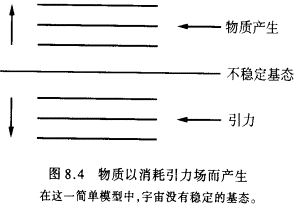 Tryon)在1973年提出,但它似乎又回到了约当的观点。特赖恩认为,我们宇宙可以描述为具有两种能量形式,一种与引力有关,因而是负能量;另一种与质量有关,根据爱因斯坦著名的质能公式E=mc2,是正能量。