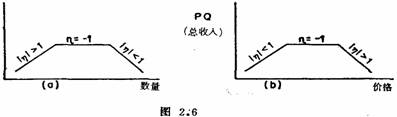 在处理需求曲线时,运用弹性概念最重要的理由之一是,它提供了揭示总收益变动的最适合的方法。总收益的变动取决于两个因素:价格变动和数量变动。就负斜率的需求曲线而言,这些因素对总收益有相反的作用。价格降低趋向于减少收益,与这些相关的数量增加又趋向于增加收益;反之,价格上升则趋向于增加收益。如果价格百分数的变化在绝对值上等于相关数量的百分数变化,则这两种作用相互抵消,总收益不变。在这种情况下,从定义上看是清楚的,即需求弹性是-1,一般称为需求的单位弹性。如果价格的百分数变化在绝对值上比相关数量的百分数变化大,这时价格的变动作用占绝对优势,因此,总收益的变动与价格变动是同一方向的,价格降低收入减少,价格上升收益增加。在这种情况下,弹性将在0到1之间取值,并且需求被认为是缺乏弹性的。如果价格的百分数变化在绝对值上比相关数量的变化较小,这时数量的变动作用占绝对优势,所以,总收益的变动与数量变动方向相同,与价格变动则方向相反,当价格下降时总收益增加,当价格上升时总收入减少。此时,弹性在-1到8之间取值,需求被认为是有弹性的。