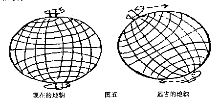 南北两极被冰层覆盖已有15000年的时间,上面说过,造成这种现象的原因是太阳照射的角度。如果想使南北两极温暖,只有两个办法,一是改变地轴的指向,二是改变地球围绕太阳旋转的轨道。后一种可能显然行不通,因为地球在太阳系一经形成就以这条固定的轨道绕太阳旋转,看来只能是地轴的指向发生变化,或者向现在的东北偏移,或者向西北偏移,这样才能使两极脱离极地,变得温暖起来。根据古史里的其它证据,我们判断:15000年前地轴是向现在西北一东南方向偏移的(见图五)。 《山海经·海内经》:“有木名曰建木,百仞无技,(上)有九楼,下有九枸。(建木)引之有皮,若缨黄蛇。”《淮南子·地形篇》称:“建木在都广,日中无影,呼而无响,盖天地之中也。”据考证,成谓的“都广”就是现在的成都。这则记载中有一条重要的线索:建木高百丈,但却在太阳下没有影子(没有影子是夸大,但影子极小是事实),并说它生长在天地中间。我们不妨想一想,一颗大树在太阳下影子极小的情况在什么地方能够发生呢?只有在赤道附近,至少在回归线以内,这些地方太阳光直射,所以树林的影子极小,而且越接近赤道影子越小。而现在的成都在北纬30度线上,不可能发生树木在日照下无影的情况。但是,如果地轴向西北一东南偏移一个很大的角度,成都就有可能进入北回归线之内。 还有一个证据,人们在整理上古埃及留下的各种文献时,发现在一种文献中讲到了钟表的制造,它是按一年中最长的白天与最短的白天之比来制造钟表的,大约是14:12,而这个时区是在赤道及南北纬线15度范围内。可是,上古埃及文明最发达的地区是尼罗河三角洲,大致也在北纬30度线上。他们为什么要制造与他们时区不相符的钟表呢?很可能当时埃及正位于这个时区内,这也说明地轴不在现在的位置上。 雅利安人曾生活在现在的印度一带,但他们不是当地的土著居民,是从一个很远的地方迁徙过来的。据雅利安人的古籍《赞德·阿维斯塔》说,他们迁徙的原因是那里的气候发生了变化(这是古代部落迁徙的重要原因之一)。据这本书说,他们曾经住过的地方太阳、月亮、星辰一年只在他们头上出现一次,1年好像是只有1个白天和1个晚上。这种现象只能发生在极地。由此我们这样认为,雅利安人最早的居住地是个温暖的地方,很适合人类居住(否则他们早就迁徙了),但渐渐的这个地区变成了极地,无法再生存下去只好迁移。这也反过来说明,现在的北极在很早之前是温暖的,也就是说地轴并不是现在的指向。 根据以上这些证据,地轴在很久之前不在现在的位置上,而是向西北——东南偏了一个很大的角度。大约在1万年前一场巨大的事变,使地轴移到了现在的位置上。这个事变,我们认为就是天地分离。被击坏了反引力装置的月球产生的巨大引力使地轴迅速向现在的位置上移动,整个过程大约只有几个月。这样短的时间内发生了如此大的巨变,产生了一系列难以想象的后果。 大洪水是怎么发生的? 在解释这场人类大劫难之前,必须搞清楚这场洪水的几个特点。 据现有资料,这场洪水主要发生在地球北半部大陆,越往南水位越低,有些地方甚至出现海洋退潮现象。 这场巨大的洪水持续的时间很短。据《圣经》记载说,洪水持续高涨了四十天,“天下的高山都淹没了。水势比山高过十五肘,山岭都淹没了。”40天后,洪水开始退去,到第一百五十天完全退尽。古巴比伦的《季尔加米士史诗》是世界上记载大洪水最完整的资料。据说,这部史诗是根据在大洪水中幸免于难的西纳比斯亲口述说的传说写成的。诗中记载,大洪水一共持续不断高涨了12天,然后开始退去,到第一百二十九天彻底退完。中国西南部伏羲的传说也说洪水退得极快,使伏羲父亲坐的船一下子从空中摔了下来。 据中国《淮南子·天文训》记载,这场大洪水是从东南方向退去的,“地不满东南,故水潦尘埃归焉。” 以往研究大洪水,都是把它作为一个孤立事件来研究,这样虽然能使具体问题得到深入研究,但却不能完整解释整个事件的发生,有许多相互关联的问题统不到一起。我们把大洪水放到一个连续不断的事件中去研究,这样就可以解决许多以前难以解决的问题。 我们认为,大洪水是海侵事件!能在很短的时间内淹没大陆高山的水,绝不是来自降雨,虽然在许多关于大洪水的记载中都提到了天降大雨的情节,但这决不是导致洪水发生的原因,只能看作是洪水发生时天气异常的表现。 那么,大洪水是怎么发生的呢? 索菲亚天文台长埃斯·鲍奈夫认为,如果一颗小地星(其直径770公里,约是月亮的l/5),从地球半径6倍的距离(37800公里)的地方通过,地球将因此发生比普通涨潮大10倍力量的汹涌波涛,海水会向小行星通过的方向集中。 当被击损了反引力装置的月球宇宙飞船从现在的西北方(以前的正北)缓慢离去的时候,本身强大的引力,加上分离时产生的巨大的拉力,使南半球的海水以排山倒海之势涌向地球北半部,几百米高的巨浪一个接着一个,以每小时几百公里的速度呼啸着扑向北方大陆,吞没了平原,吞没了谷地,吞没了这些地方所有的生灵。在短短十几天的时间里,北方的海水上涨了1000多米,大陆上一片汪洋,在汪洋中一些高山的顶端孤露出水面,看上去好像一个一个小岛。高山在海浸中颤抖,陆地在巨变中呻吟。 地月分离时产生的巨大拉力,使地轴向现在所在的方向移动,住在一