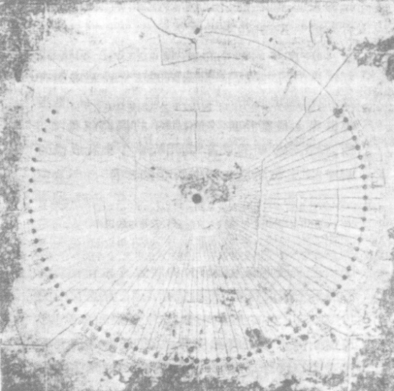 表的结构虽然简单,功能却不少。表的最初用途是确定方向。太阳并不是每天都从正东方升起正西方落下。以北京地区(地理纬度40°00′)为例,冬至日的时候,太阳于东偏南31°左右升起,于西偏南31°左右落下,远离东点西点。每年只有在3月21日(春分日)和9月23日(秋分日)前后,才可以说太阳真正是“东升西落”。那么凭表影怎样来确定方向呢?古代以表立处为圆心作一个任意圆,然后连接日出日没时表影与圆周相交的两点,便得到正东正西方向,并由东西而知南北(见图5)。为了提高测量精度,也可多划几个任意圆,取多次平均值。不过,日出日没时的表影常常比较模糊,即使多次测量,也难免会有较大误差。如果采用上午或下午两次等长的表影,取其端点的连线,一样可获知东西方向。元代天文学家郭守敬的定向仪器“正方案”正是利用这一原理设计的。
