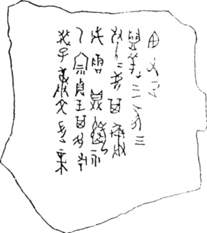此外,在殷墟之外的一些地方如河南省郑州市、洛阳市,山西省洪洞县,山东省济南市,陕西省长安县、扶风县、岐山县以及北京市昌平县等地的古代文化遗址中,后来也都陆续发现有甲骨文。