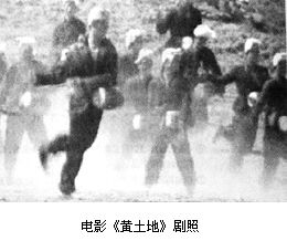 由陈凯歌导演的《黄土地》是“第五代”导演的代表作6.据陈凯歌自述,这部影片的剧本是电影厂派给他的,原作是个非常老套的故事,但他之所以获得再创造的机会,是因为整个故事都发生在陕北黄土高原上。“黄土地”成为整个影片的核心意象:画面构图始终以大面积的黄土为主,沟壑与土塬连绵不绝,山形地貌经岁月的销蚀,大起大落,高原一片荒凉,没有一点生命的痕迹。“黄土地”看上去或温暖、或冷漠、或贫瘠、或深广,总是传达出一种特别沉重和压抑的感觉,在影片中,它的意义已远不只是单纯的故事背景,成了整个民族的人格化的象征体。