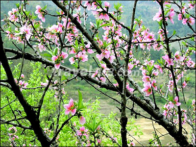 东晋太元年间,有一个武陵人以捕鱼为业,一天他沿着溪流划船前行,竟然忘掉了路的远近。忽然遇到一片桃花林,夹着溪水两岸有数百步之长,其中没有其他树木,地上的芳草鲜嫩优美,遍地是掉落的桃花瓣;渔人觉得十分惊奇。又继续向前走,想走完这片桃花林。
