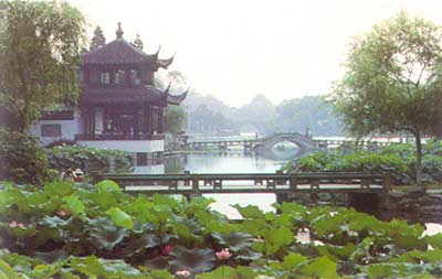 “欲把西湖比西子,浓妆淡抹总相宜”两句,诗人用一个奇妙而又贴切的比喻,写出了西湖的神韵。诗人之所以拿西施来比西湖,不仅是因为二者同在越地,同有一个“西”字,同样具有婀娜多姿的阴柔之美,更主要的是她们都具有天然美的姿质,不用借助外物,不必依靠人为的修饰,随时都能展现美的风致。西施无论浓施粉黛还是淡描娥眉,总是风姿绰约的;西湖不管晴姿雨态还是花朝月夕,都美妙无比,令人神往。这个比喻得到后世的公认,从此,“西子湖”就成了西湖的别称。