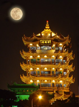 黄鹤楼:武昌西有黄鹤山,山西北有黄鹤矶,峭立江中,旧有黄鹤楼(故址在今武汉长江大桥武昌桥头)。