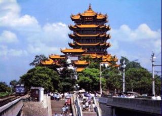黄鹤楼:旧址原在湖北武昌蛇山黄鹤矶上,传说三国时费文祎在此楼乘黄鹤登仙而去。广陵:今江苏扬州市。