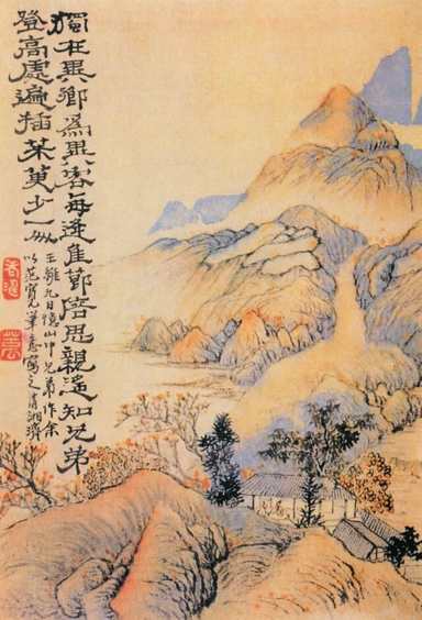 诗因重阳节思念家乡的亲人而作。王维家居蒲州(今山西永济),在华山之东,所以题称“忆山东兄弟”。写这首诗时他大概正在长安谋取功名。繁华的帝都对当时热中仕进的年轻士子虽有很大吸引力,但对一个少年游子来说,毕竟是举目无亲的“异乡”;而且越是繁华热闹,在茫茫人海中的游子就越显得孤孑无亲。第一句用了一个“独”字,两个“异”字,分量下得很足。对亲人的思念,对自己孤孑处境的感受,都凝聚在这个“独”字里面。“异乡为异客”,不过说他乡作客,但两个“异”字所造成的艺术效果,却比一般地叙说他乡作客要强烈得多。在自然经济占主要地位的封建时代,不同地域之间的风土、人情、语言、生活习惯差别很大,离开多年生活的故乡到异地去,会感到一切都陌生、不习惯,感到自己是漂浮在异地生活中的一叶浮萍。“异乡”、“异客”,正是朴质而真切地道出了这种感受。作客他乡者的思乡怀亲之情,在平日自然也是存在的,不过有时不一定是显露的,但一旦遇到某种触媒──最常见的是“佳节”──就很容易爆发出来,甚至一发而不可抑止。这就是所谓“每逢佳节倍思亲”。佳节,往往是家人团聚的日子,而且往往和对家乡风物的许多美好记忆联结在一起,所以“每逢佳节倍思亲”就是十分自然的了。这种体验,可以说人人都有,但在王维之前,却没有任何诗人用这样朴素无华而又高度概括的诗句成功地表现过。而一经诗人道出,它就成了最能表现客中思乡感情的格言式的警句。