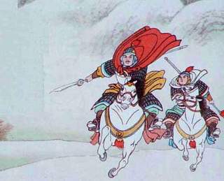 后两句写将军准备追敌的场面,气势不凡。“欲将轻骑逐”,将军发现敌军潜逃,要率领轻装骑兵去追击;正准备出发之际,一场纷纷扬扬的大雪,刹那间弓刀上落满了雪花。最后一句“大雪满弓刀”是严寒景象的描写,突出表达了战斗的艰苦性和将士们奋勇的精神。